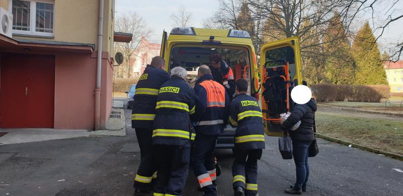 TP/PACIENT:Ostrov,Masarykova ul. - Jednotka vyjela s CAS-20 MAN ke spolupráci se ZZS s transportem pacienta do sanitního vozu.