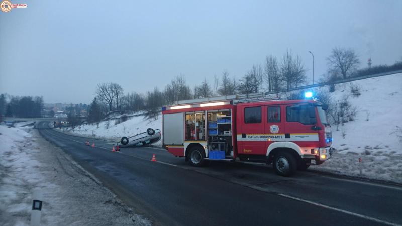DN/ÚKLID: Ostrov, Karlovarská ul. - Jednotka vyjela s CAS-20 MAN společně s jednotkou HZS Karlovy Vary s CAS-24 Scania k dopravní nehodě osobního vozidla.