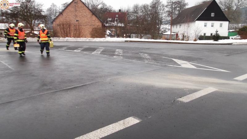 ÚNIK NL/SILNICE: Krásný Les, st.sil.č.1/13 - Jednotka vyjela s CAS-20 MAN k likvidaci úniku ropné látky na komunikaci směr Stráž nad Ohří.