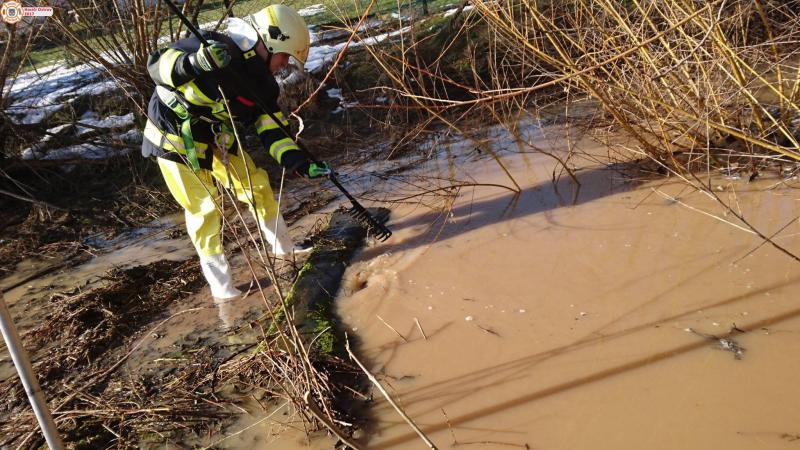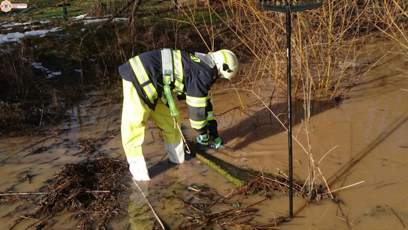 TP/ODSTRANĚNÍ NEBEZPEČÍ: Kfely - Jednotka vyjela s CAS-20 MAN k pročištění vodní propustě, kdy voda tekla z pole a zaplavovala zahradu a místní komunikaci.