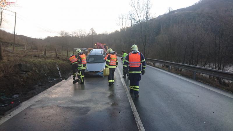 DN/ÚKLID: Stráž nad Ohří-Boč, st.sil.č.1/13 - Jednotka vyjela s CAS-20 MAN společně s jednotkou HZS Klášterec nad Ohří s CAS-15 MAN k dopravní nehodě osobního vozidla.