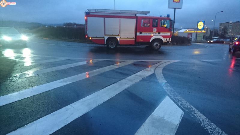ÚNIK NL/SILNICE: Ostrov, Obchodní ul. - Jednotka vyjela s CAS-20 MAN k likvidaci uniklé nafty na komunikaci z neznámého vozidla na kruhovém objezdu u OD Lidl směr Kfely.