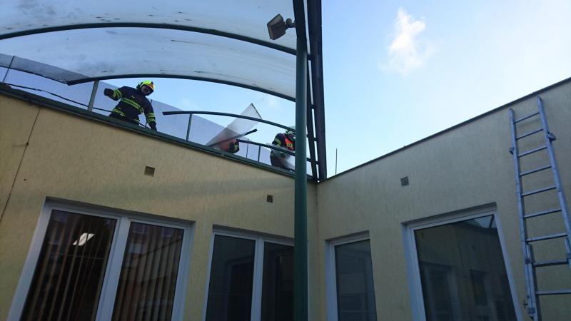 TP/ODSTRANĚNÍ NEBEZPEČÍ: Ostrov, Hlavní třída - Jednotka vyjela s CAS-20 MAN společně s jednotkou HZS Karlovy Vary s AŽ-37 Iveco k odstranění uvolněného plechu ze střechy budovy. Ve 14:29 byly obě jednotky přeposlány k další události stejného charakteru.