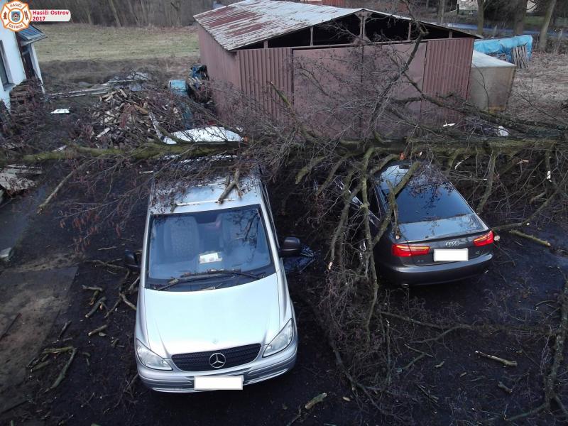TP/STROM: Ostrov, ul. Lesní - Jednotka přejížděla z předchozího výjezdu s CAS-20 MAN, VeA Š-Yeti k odstranění padlého stromu.