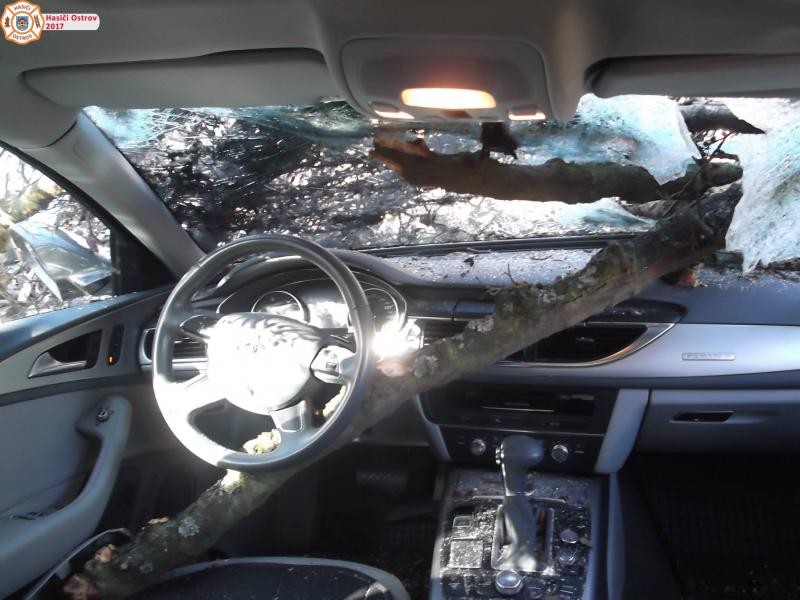 TP/STROM: Ostrov, ul. Hroznětínská - Jednotka přejížděla z předchozího výjezdu s VeA Š-Yeti k odstranění padlého stromu.