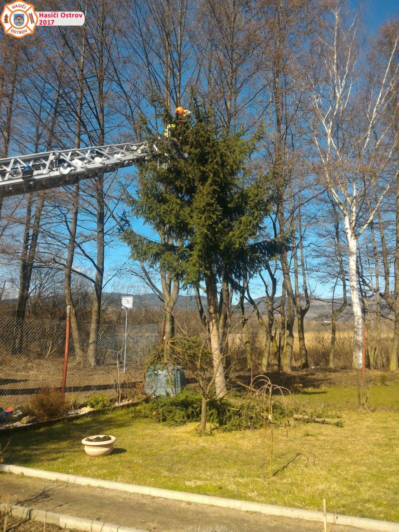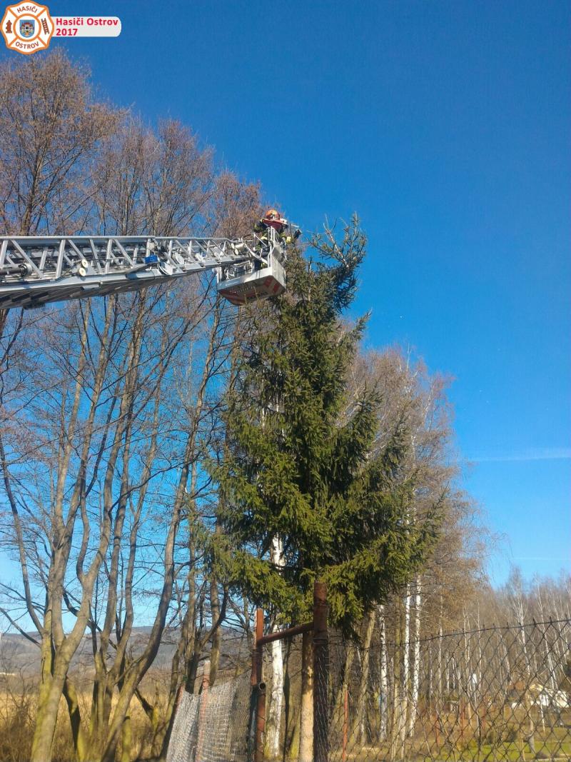TP/ODSTRANĚNÍ NEBEZPEČÍ:Ostrov, ul.U Nemocnice - Jednotka vyjela s CAS-20 MAN společně s jednotkou HZS Karlovy Vary s AŽ-37 Iveco k nahnutému stromu hrozícího pádem.