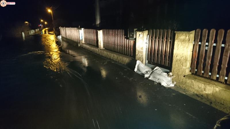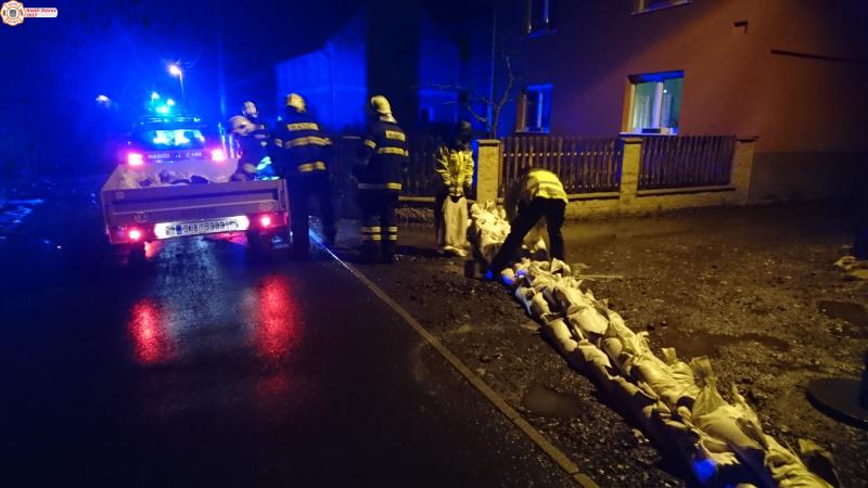 TP/ODSTRANĚNÍ NEBEZPEČÍ:Kfely - Jednotka vyjela s CAS-20 MAN, VeA Š-Yeti k rozvodněnému toku řeky Bystřice, kdy došlo k zaplavení komunikace. Jednotka následně stavěla protipovodňové zábrany pomocí pytlů s pískem.