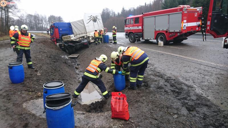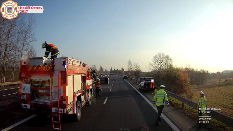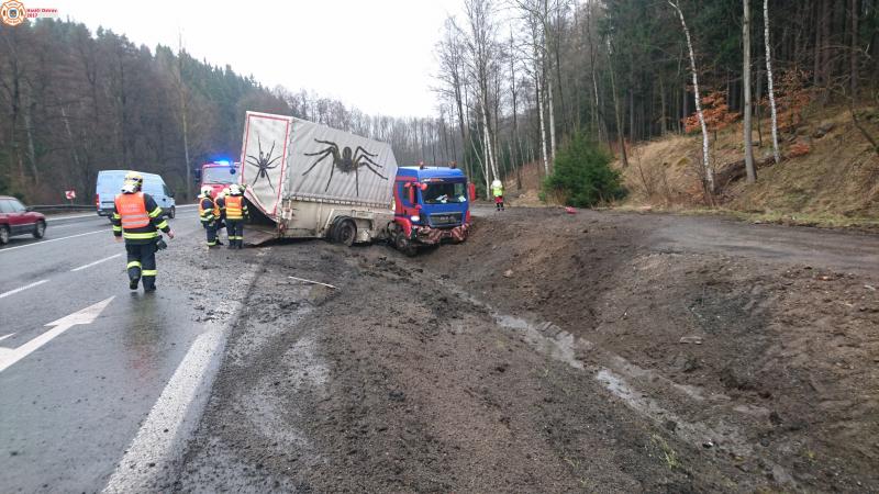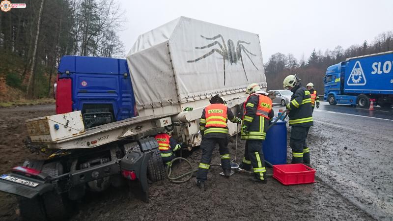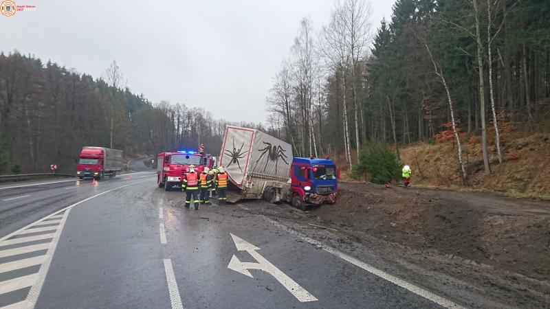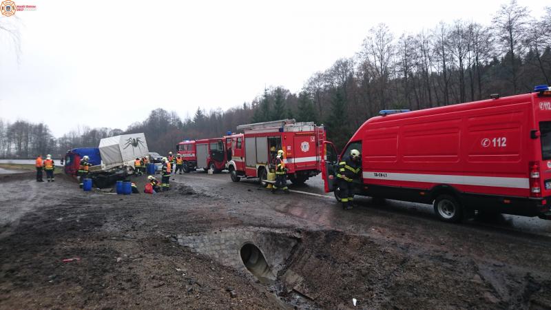 DN/ÚKLID:Karlovy Vary,st.silnice č.1/6 - Jednotka vyjela s CAS-20 MAN, společně s jednotkou HZS Karlovy Vary s CAS-20 T-815 "Cobra", TA CHL1 Iveco, CAS-24 Scania k dopravní nehodě kamionu u odbočky na Hůrky.