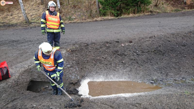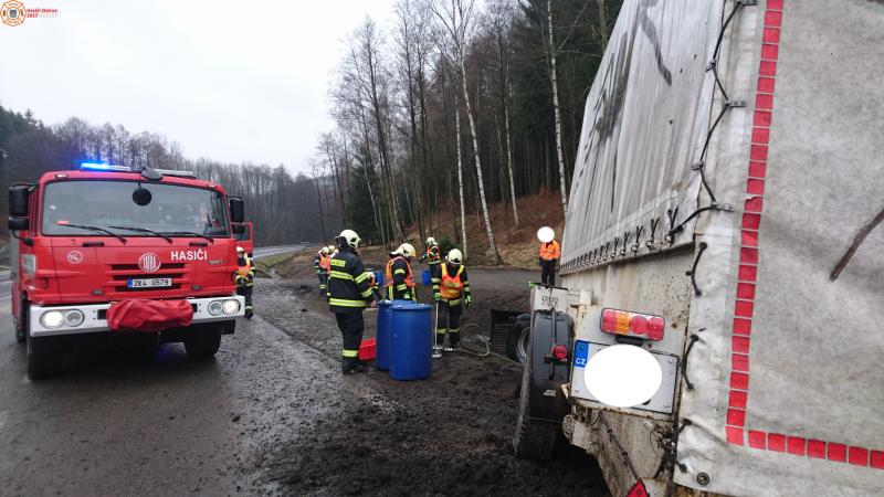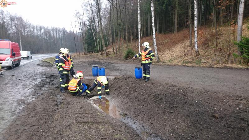 ÚNIK NL/SILNICE:Ostrov, st.sil.č.1/13 - Jednotka vyjela s CAS-20 MAN společně s jednotkou HZS Karlovy Vary s CAS-24 Scania k úniku motorového oleje po technické závadě na osobním vozidle u obce Nová Víska.