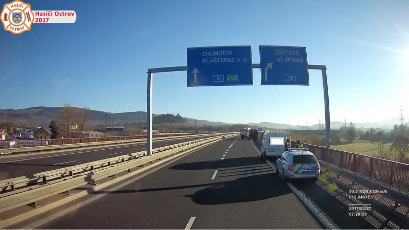 DN/ÚKLID:Dolní Žďár,st.sil.č.1/13 - Jednotka vyjela s CAS-20 MAN společně s jednotkou HZS Karlovy Vary s CAS-24 Scania k doparvní nehodě dodávkového a nákladního vozidla směr Chomutov.