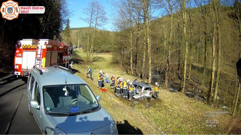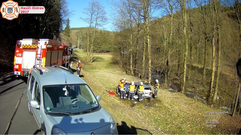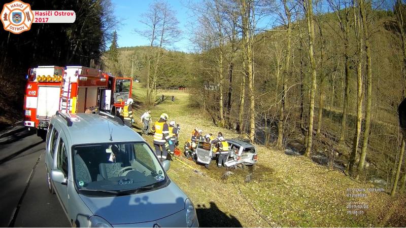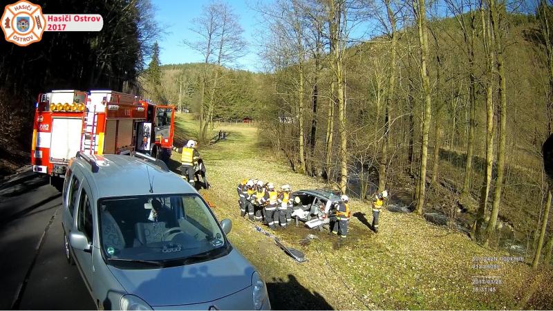 DN/VYPROŠTĚNÍ:Merklín - Jednotka vyjela s CAS-20 MAN společně s jednotkou HZS Karlovy Vary s CAS-24 Scania k dopravní nehodě dvou osobních vozidel u obce Merklín. Při nehodě došlo ke zranění jednoho z řidičů, který byl po vyproštění z vozidla letecky transportován do nemocnice. Po ukončení zásahu se jednotka vrátila k předešlé události k úniku oleje v Ostrově.